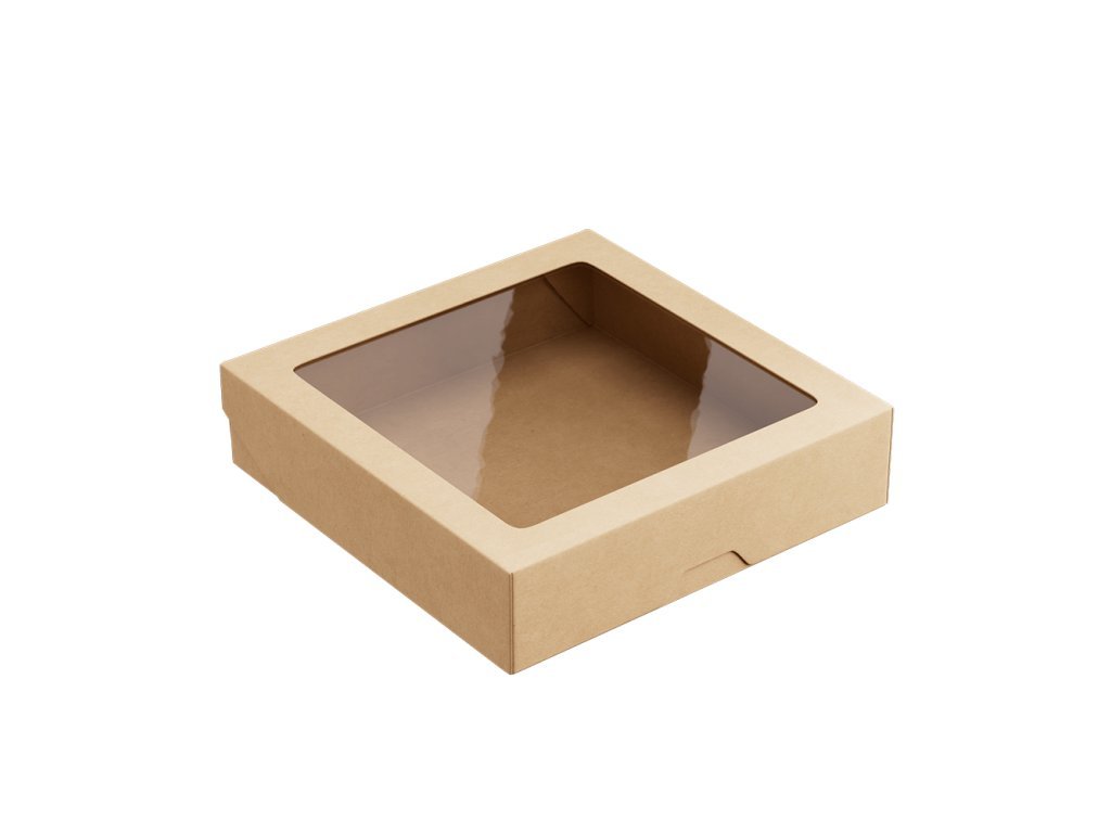 Krabička hnedá s okienkom 1500ml kraft 200x200x48mm (25ks)